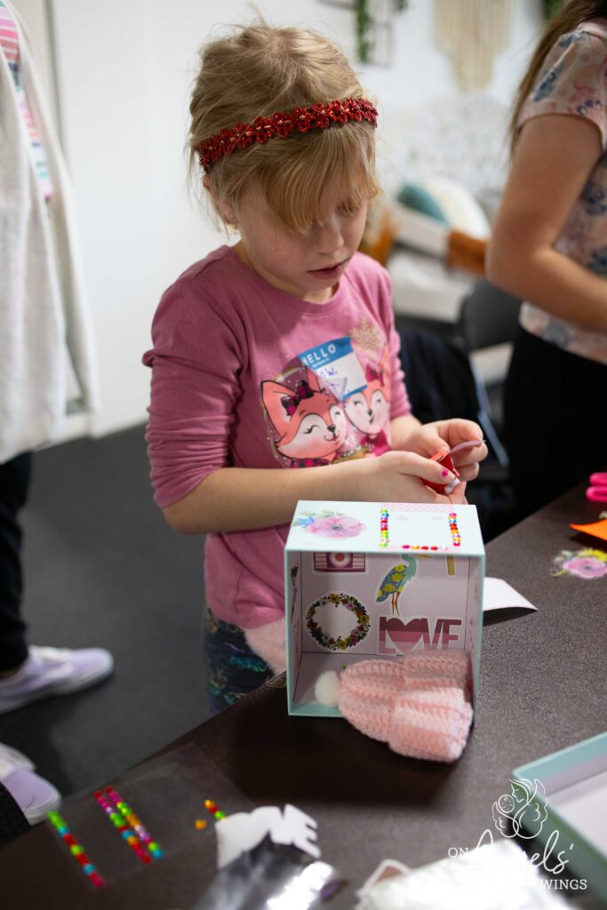 On Saturday, December 6, On Angels’ Wings (OAW) held its first-ever Children’s Grief Day Camp, welcoming seven girls ages 7–12 to the OAW studio in Springfield for a full day of guided, creative, and therapeutic activities designed to help young people process grief in healthy ways. All attending children were siblings of infant loss, with several navigating additional grief or complex emotional experiences in their lives.