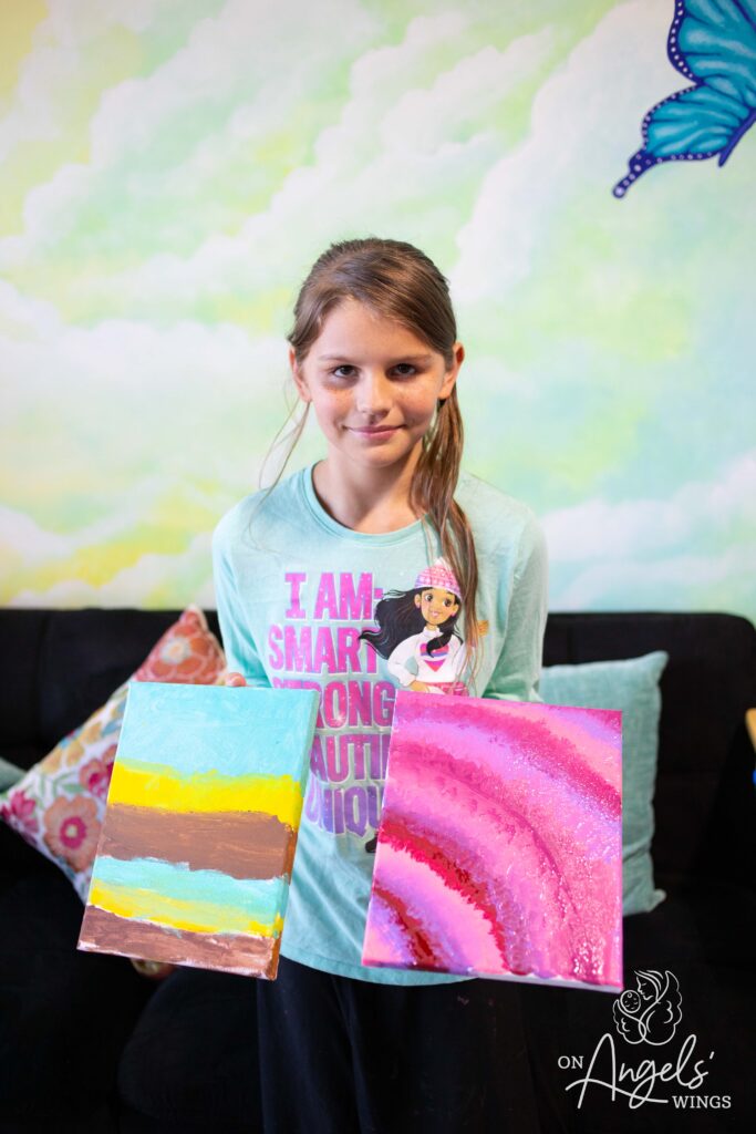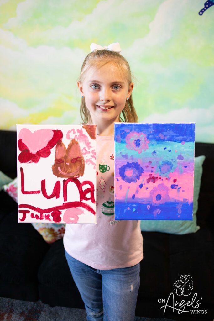 The change between each child’s first and final canvas was striking — visually reflecting the transformation that can occur when grief is witnessed, supported, and held with care.