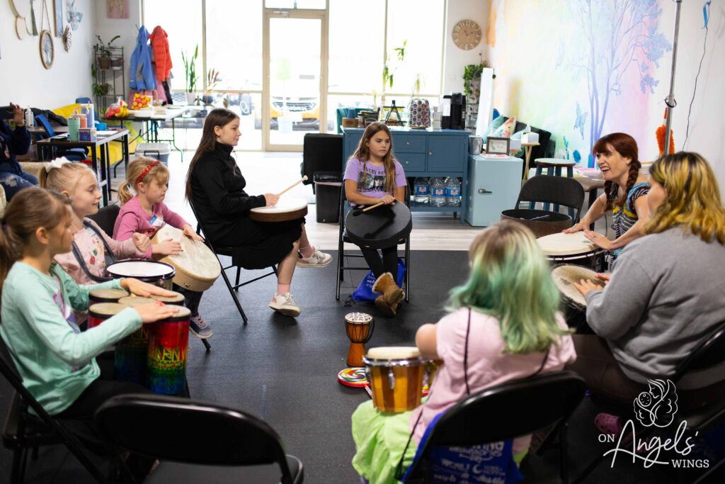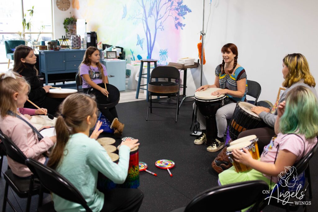 • Drum circle led by music therapist Molly Duggins — exploring emotional release through rhythm and sound.