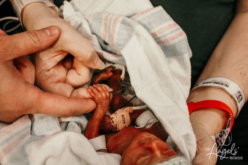 We were able to hold his hand, love on him, and be there as he passed. His NICU doctor prayed with us, and we held him as he slipped away. He died from complications related to extreme prematurity.