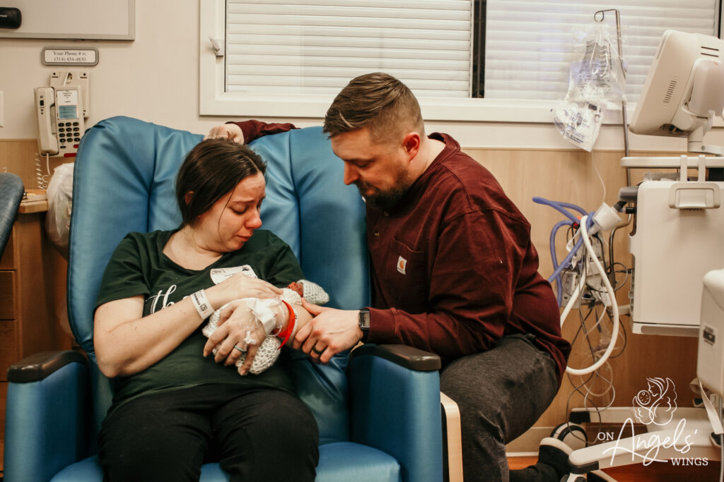 Because of how early I was, I was transferred from our local hospital to Barnes in St. Louis. I was admitted to their antepartum unit, where we met with the MFM team and Children’s NICU multiple times. We were told over and over how low our baby’s chances of survival were, and what long-term complications could happen due to the lack of amniotic fluid and being born so early.
