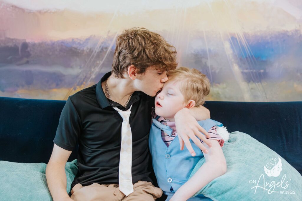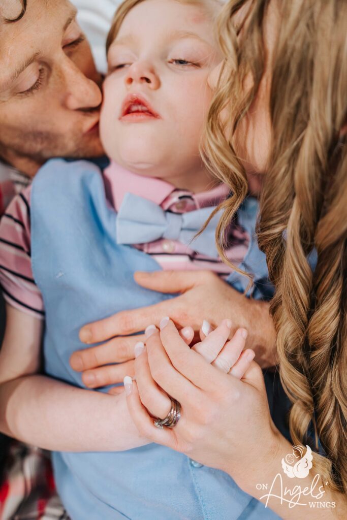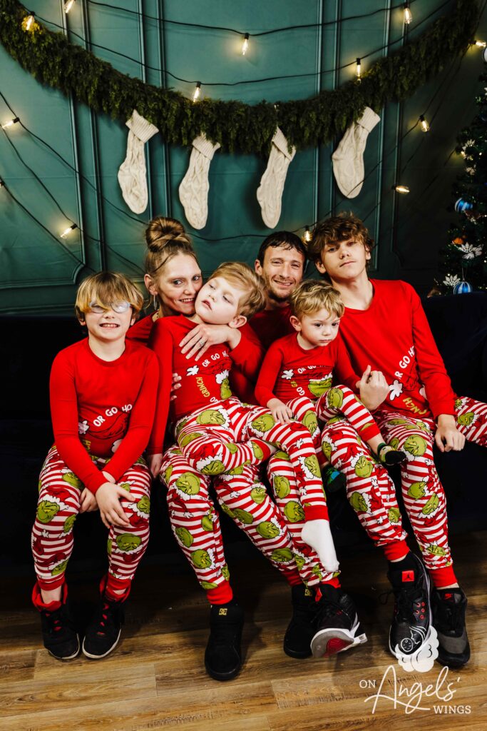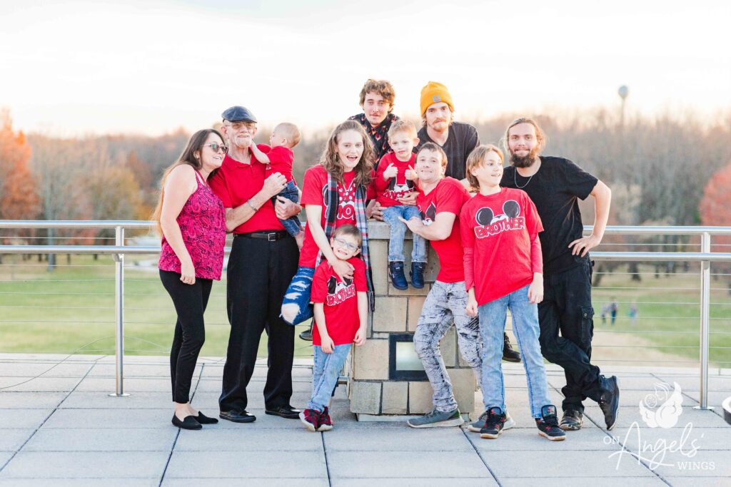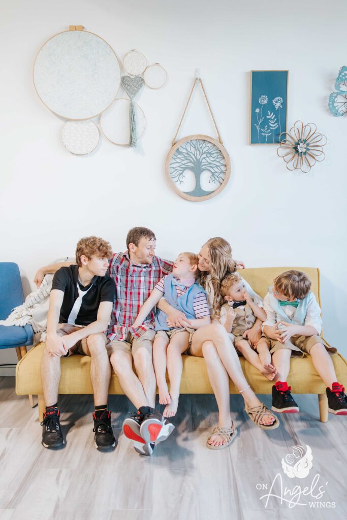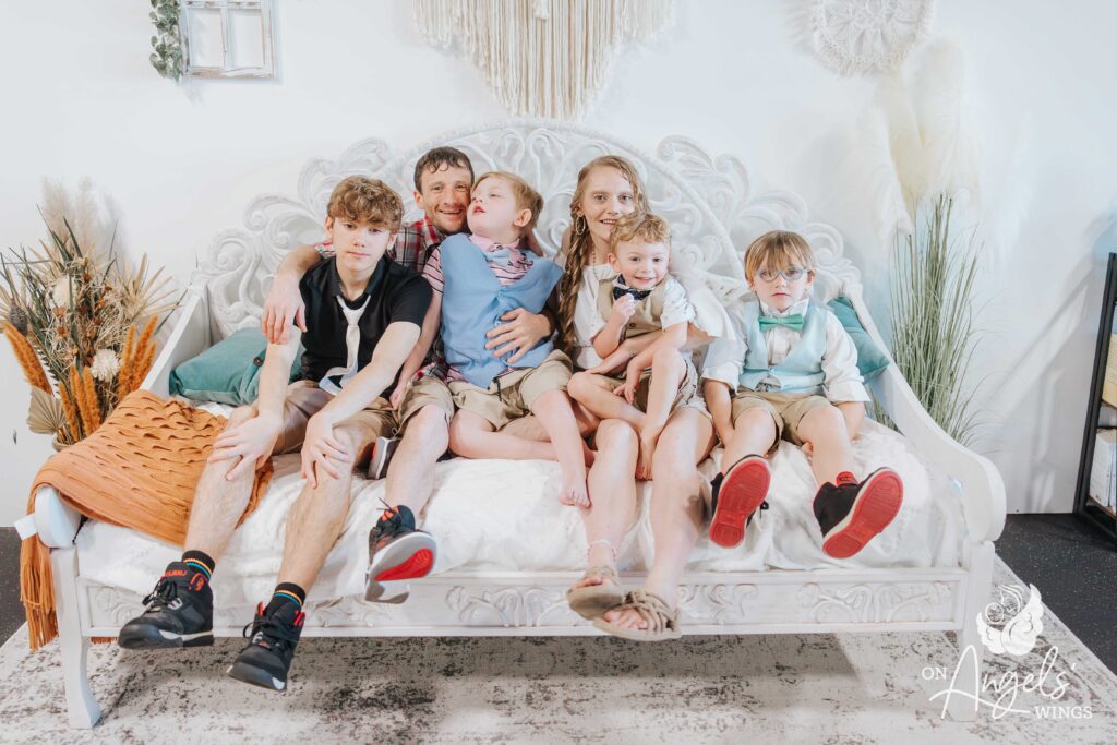 A friend told us about On Angels’ Wings. I had wanted family photos so badly, but every time I saved enough money, something else would happen and we’d have to use it. Our OAW photographer has been incredible. She made sure Bacon was the center of attention while also including all of our other children. She always made each of us feel special and truly went above and beyond. You could feel the love and compassion throughout the entire session.