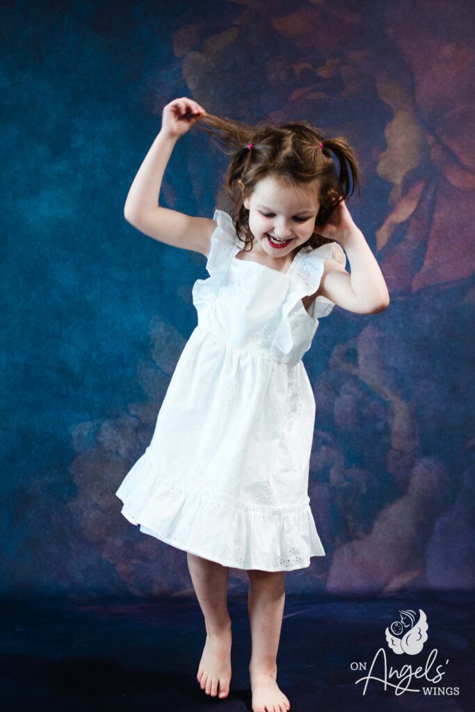 I found On Angels’ Wings when I was searching online for something to help me mentally process everything that comes with her diagnosis. That’s when I came across them. The pictures OAW provides are something I look forward to every year. Most of the time, as special needs parents, we can feel lost and hopeless with all the battles we face, and this is a little light for us.